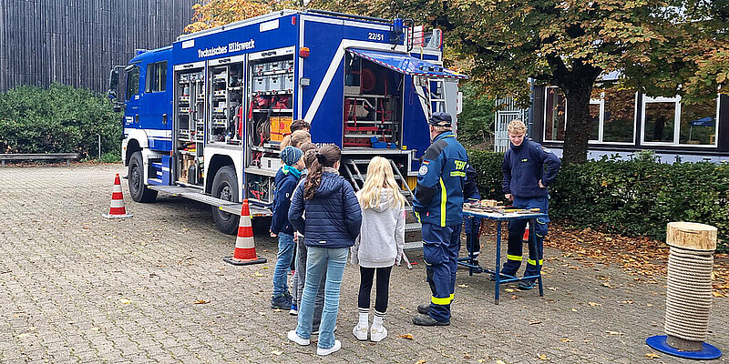 Der vom Ministerium vorgeschriebene jährliche Aktionstag „Katastrophenschutz“ soll inhaltliche Grundlagen zum Thema Katastrophen und Katastrophenschutz vermitteln. In diesem Jahr fand er am Faust am 14. Oktober mit allen sechsten Klassen statt.