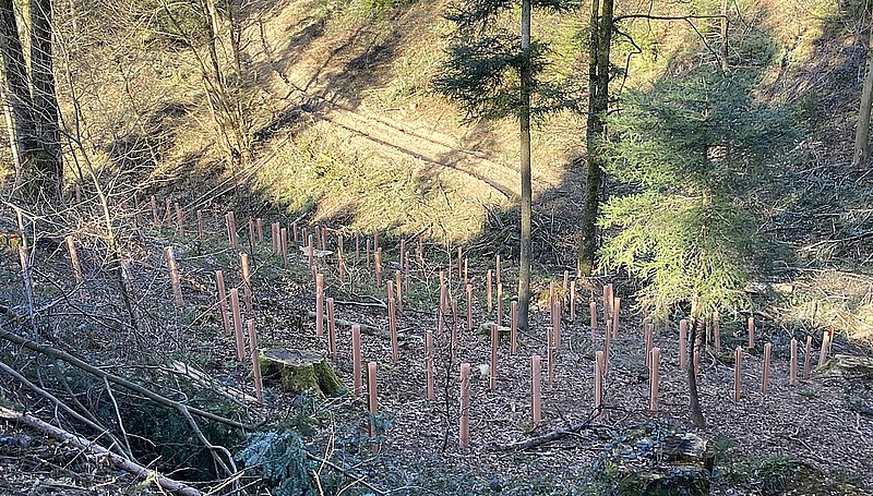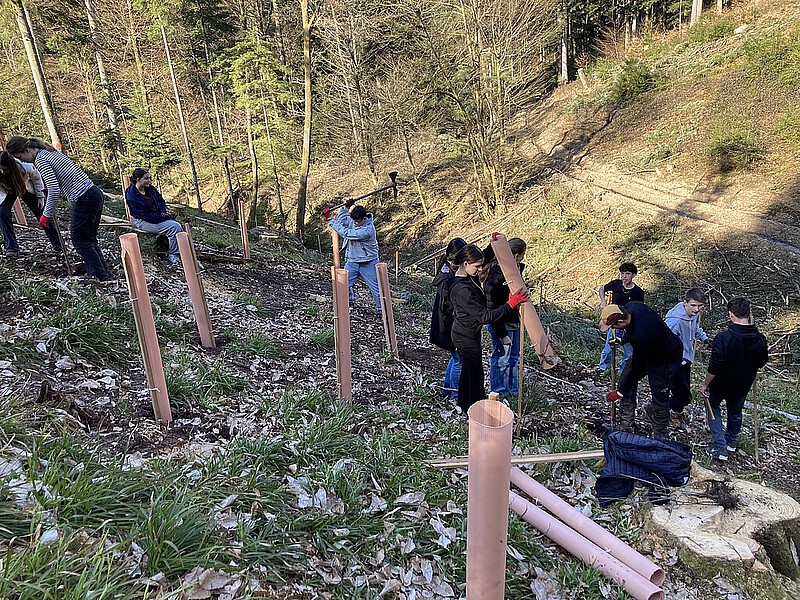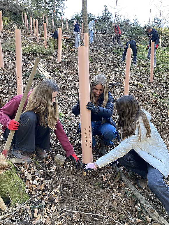 Der Einsatz dauerte drei Stunden, in denen gearbeitet, gelacht und gescherzt wurde, bis die Setzlinge schließlich an einem Hang im Saalenbachtal ihr neues Zuhause fanden - und das sogar schneller als gedacht.