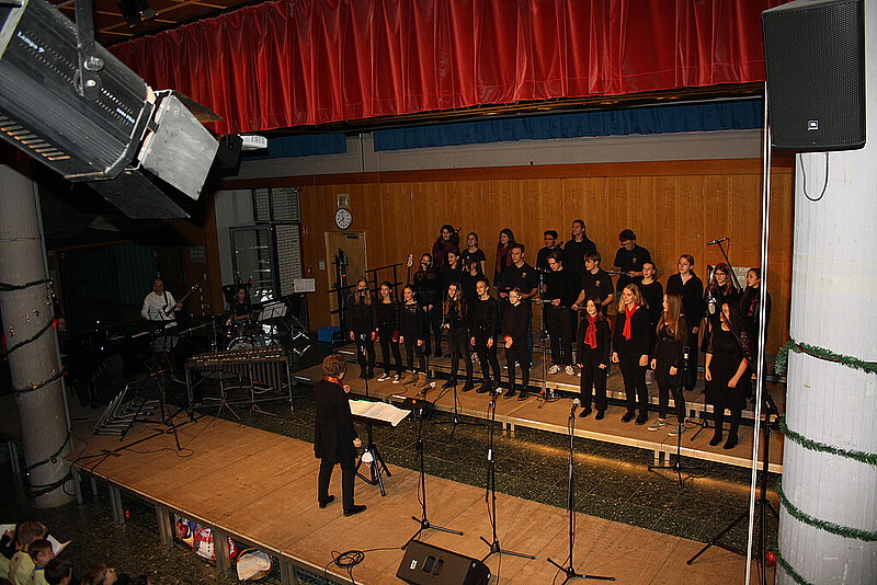 Die vorweihnachtliche Klangpalette führte von Filmmusik über Klassiker (ein Mozart-Divertimento) bis hin zur kanadischen Alt-Rockröhre Bryan Adams, die der FaustChor und Unterstufenchor samt sensationeller Soli zu strahlendem Glanz emporführten. Das Publikum war vollauf begeistert, es konnte sich vielstimmig „anlehnen“, es durfte sich treiben lassen zwischen „Paradise“, „Viva la vida“ und dem Medley „a most