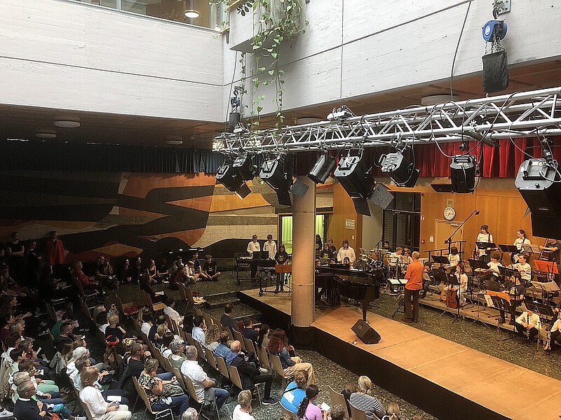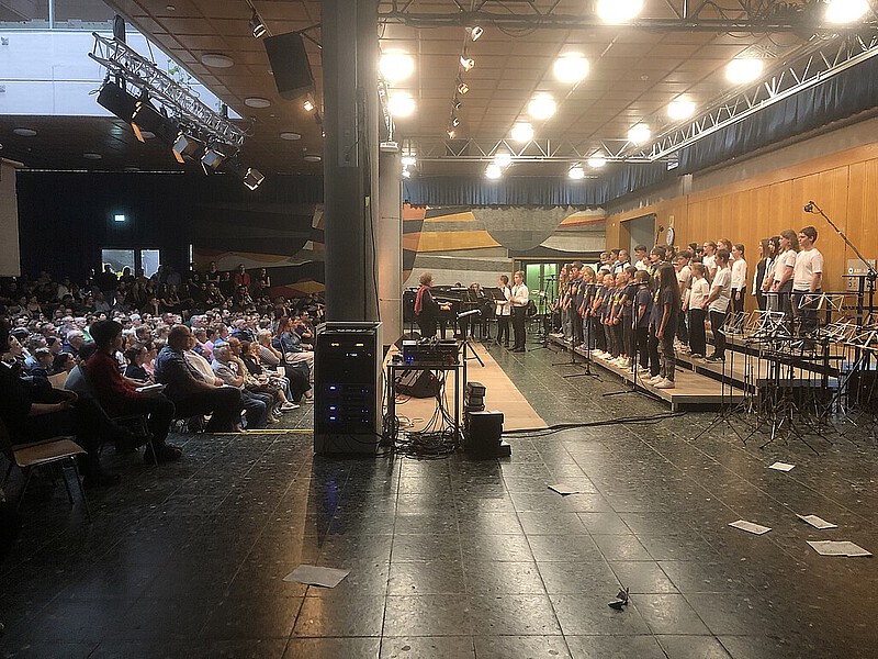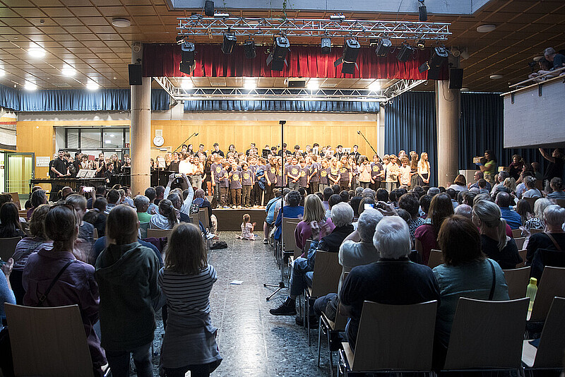 Die Aula war so pickepackevoll wie das Programm. Die Musikklassen 5f und 6e, die MWP-Chöre Klasse 5 und 6, der FaustChor und die FaustBand berauschten das Publikum mit einem fantastischen und abwechslungsreichen Programm - dem intensive Wochen und Monate von Proben vorausgegangen waren.