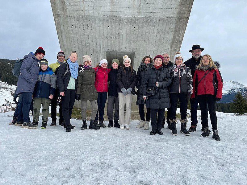 Patrick Weichert, Vorsitzender des Partnerschaftskomitees Bonneville, hatte für das Wochenende ein buntes Programm zusammengestellt. Einen Höhepunkt bildete der Ausflug zum schneebedeckten „Plateau des Glières“ (1.450 m. ü.M), auf welchem ein nationales Monument zum Gedenken an eine Schlacht im März 1944 zwischen der französischen Widerstandsbewegung, der Résistance, gegen die deutsche Wehrmacht und die mit ihr verbündeten Milizen des Vichy-Regimes. Alle Teilnehmer und im Besonderen die Jugendlichen, konnten so auch die leidvollen Facetten der gemeinsamen deutsch-französischen Geschichte hautnah eindrücklich erleben. Der Abschluss des Besuchs erfolgte in einem gemütlichen Bergrestaurant. Nach erfolgter Stärkung mit lokalen Spezialitäten aus den Savoyen erfreuten die Jungmusiker alle anwesenden Gäste mit einem spontanen „Hüttenkonzert“, wo sie erneut einen Beweis ihres außergewöhnlichen Könnens liefern konnten. Am Nachmittag folgte eine gemeinsame Probe mit Klarinettenspiern*innen aus der „Harmonie Intercommunale Bonneville-Ayze-Vougy“, der Bonneviller Stadtmusik. Bei diesem Anlass konnten neue Kontakte geknüpft und auch weitere gemeinsame Austauschprojekte geplant und auch schon Einladungen für kommende Fest- und Jubiläumsveranstaltungen ausgesprochen werden. Den feierlichen Abschluss für dieses außergewöhnliche Wochenende bildete am Sonntag ein gemeinsames Konzert der Staufener Jungmusiker*innen und den Bonneviller Musiker*innen und einem anschließenden Umtrunk im Rathaus von Bonneville, zu dem Stéphane Valli, der Bürgermeister von Bonneville sowie Géraldine Coffy, Bürgermeisterstellvertreterin und zuständig für die Städtepartnerschaften eingeladen haben.