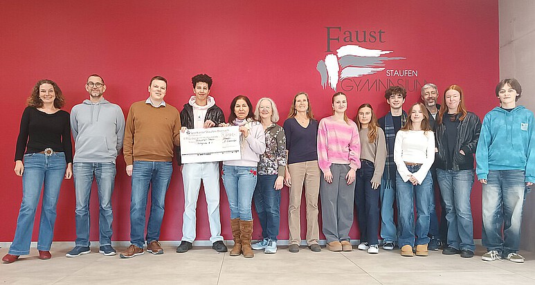 Im Jahr 2025 geht die Spende der Schulgemeinschaft über rund 5.151 Euro an die Gesellschaft Staufen–Paraguay e. V., um deren wertvolles ehrenamtliches Engagement zu fördern. Besonders freut uns, dass derzeit eine Schülerin des Faust-Gymnasiums dort ein Soziales Jahr absolviert und die Arbeit des Vereins aus nächster Nähe unterstützt. Von ihr kam auch die Anregung, die diesjährige Spende dem Staufener Verein zukommen zu lassen.
