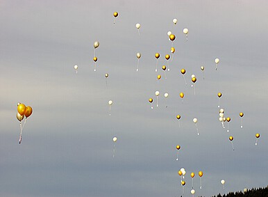 Und so stiegen zum bewegenden Finale vor dem Neubau für die nächste Generation die Ballons der aktuellen in den Staufener Abendhimmel.